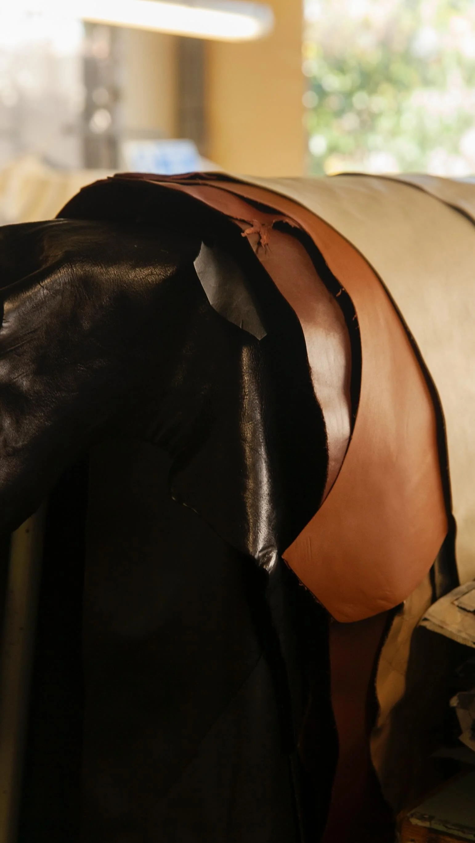 Welcome to Zerolab! The first leather upcycling center in Italy and our design studio! Our founder and designer, Cassandra Kane opened Zerolab to keep leather out of landfills and support local artisans